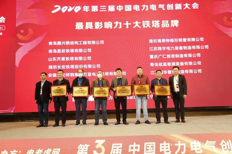 喜訊!廣仁鐵塔榮獲2020年度“最具影響力鐵塔十大品牌”